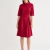 Crafted from wrinkle-resistant soft knit fabric, this midi dress features a beautiful botanical jacquard pattern that adds a touch of nature-inspired elegance. The A-line silhouette flatters your figure, while front and back darting creates a more tailored fit. With a jewel neck and back zipper closure, this dress combines sophistication with comfort, perfect for both casual and formal occasions.