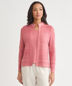 Misook Women’s Heritage Multi-stitch Knit Jacket – True Fit | Viola & Truffle & Charmeuse & Biscotti