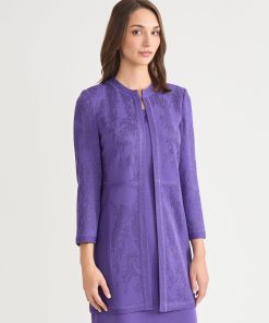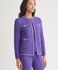 Misook Women’s Heritage Checkered Trim Knit Jacket – True Fit | Concord Purple & Black & New Ivory