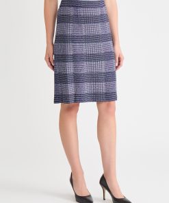 Misook Women’s Plaid Knit Straight Skirt – True Fit | Lazuli Blue & Sangria & Blue Frost & Black