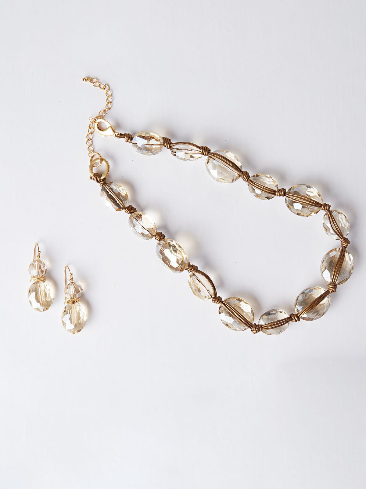 Our 18K Matte Gold Plated Champagne Crystal Earrings are a subtle, yet gorgeous, addition to any outfit. These jewels are neutral enough to work with any outfit you make be wearing. Pair these earrings with the matching necklace for a complete set.