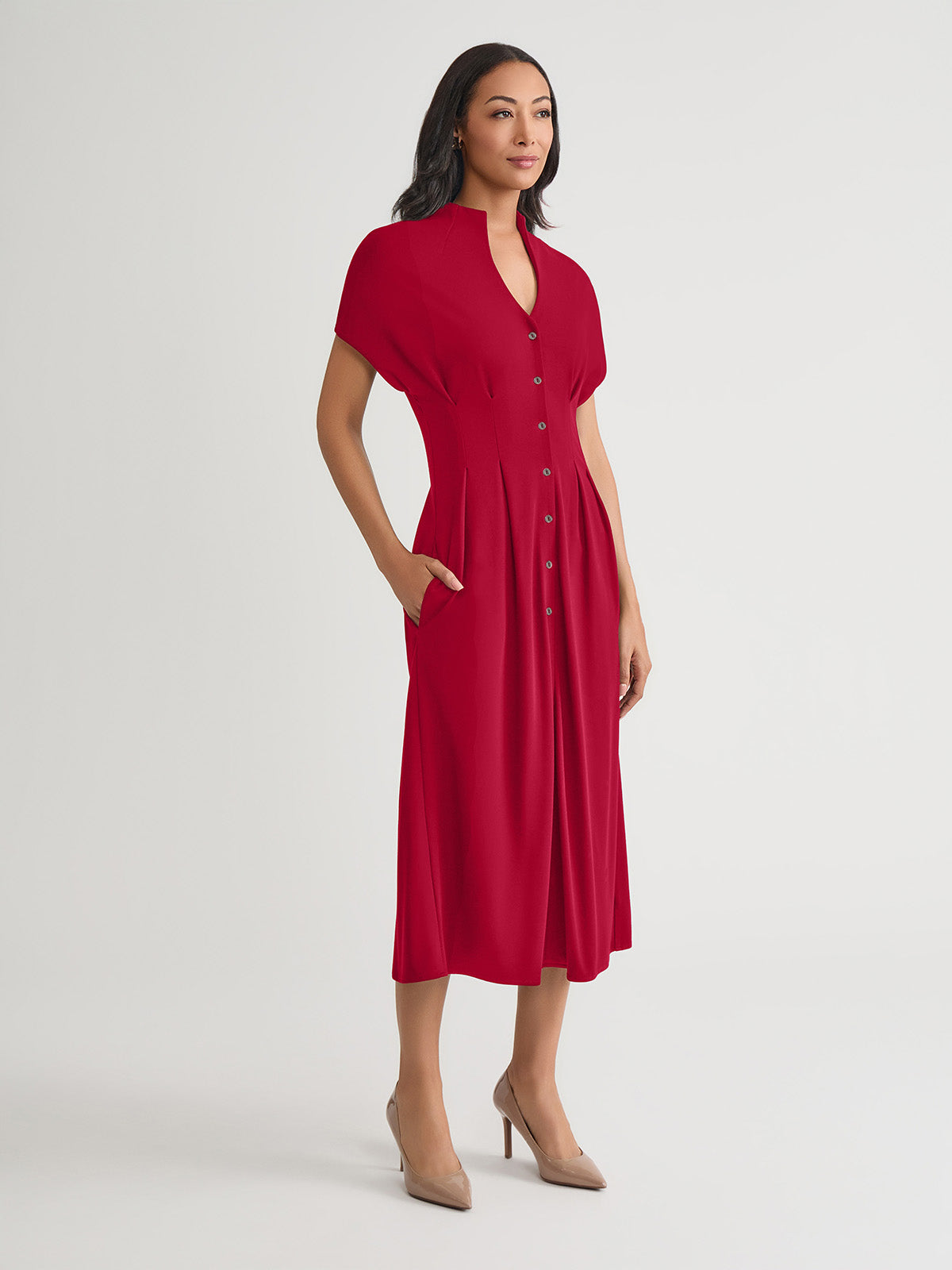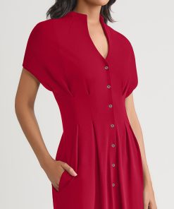 Breezy elegance meets tailored charm in this Fit & Flare Cotton Button-Up Maxi Dress. Crafted in soft, breathable cotton, it features an open stand neckline and gently flared silhouette that drapes beautifully with every step. Short sleeves and a full button-up front enhance its refined ease, while functional side pockets add a practical yet polished touch.
