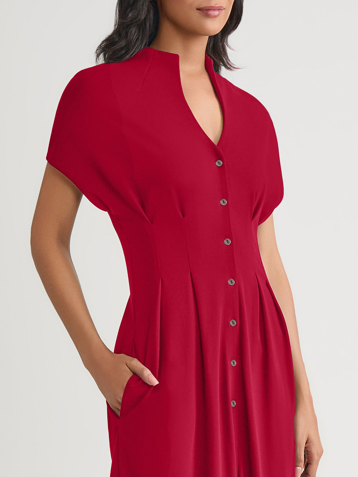 Open Stand Neck; Button Front Closure