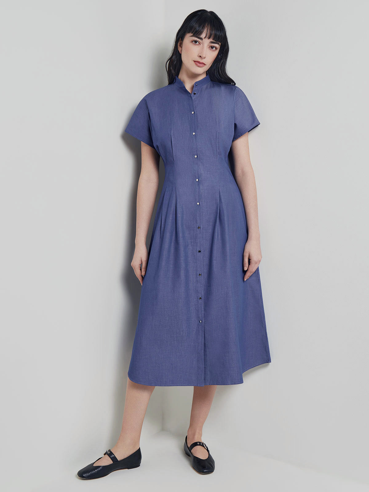A symphony of grace and sophistication, our Maxi Fit & Flare Button Front Dress is crafted from crisp and durable cotton for a polished look. The dress boasts a flattering fit & flare silhouette that exudes timeless elegance. The stand neck collar and button front closure add a touch of refined allure, while the drop shoulder short sleeves evoke a sense of understated chic. Delicate pleats adorn the dress, adding depth and movement to its graceful silhouette. Effortlessly transition from day to night with this versatile piece, embracing its refined charm that captivates attention at any occasion, showcasing the epitome of feminine grace and enduring style. 47% Polyester / 42% Rayon / 11% Nylon; Unlined Machine or Hand Wash in Cold Water; Do Not Bleach Fit & Flare Silhouette; Women’s XS Maxi Dress Length is (48″) Short Sleeves (10″) Wrinkle-Resistant