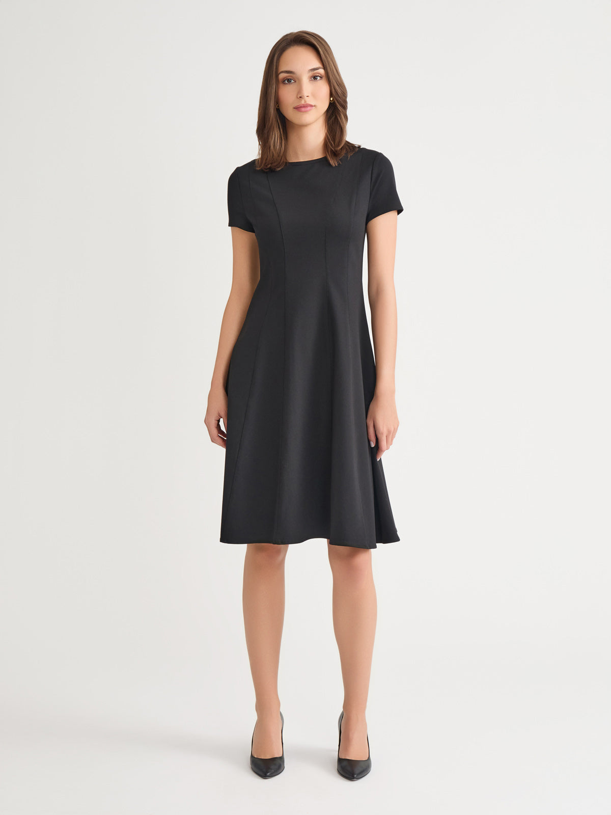 Step into effortless elegance with this Fit and Flare LuxeStretch Dress. Crafted from premium stretch Ponte fabric, this knee-length dress is designed to flatter your figure while providing all-day comfort. With a perfect balance of structure and flow, the fit and flare silhouette creates a beautiful, feminine shape that transitions seamlessly from day to night.