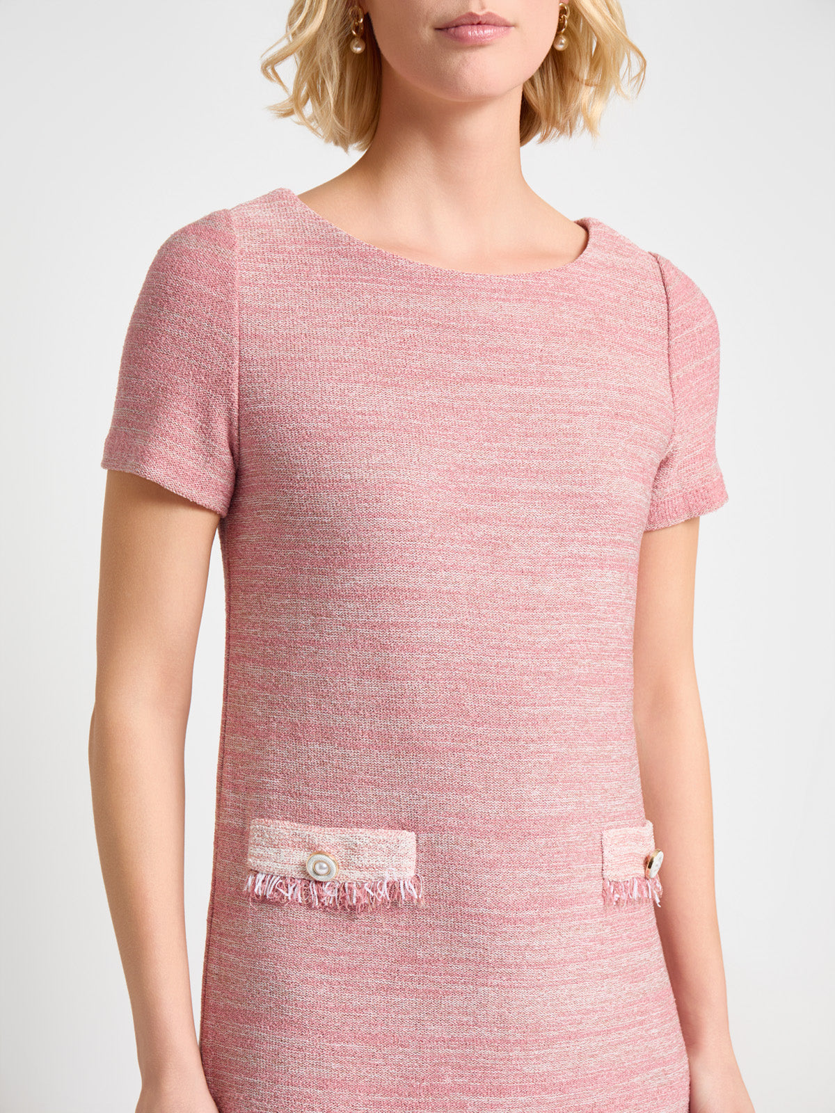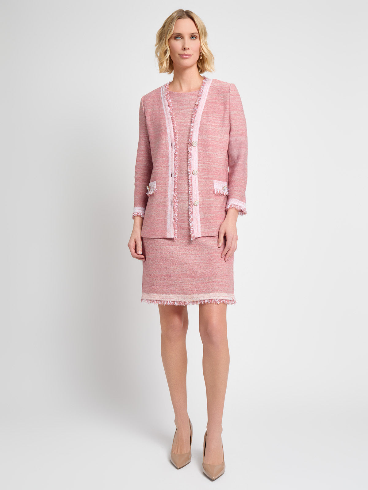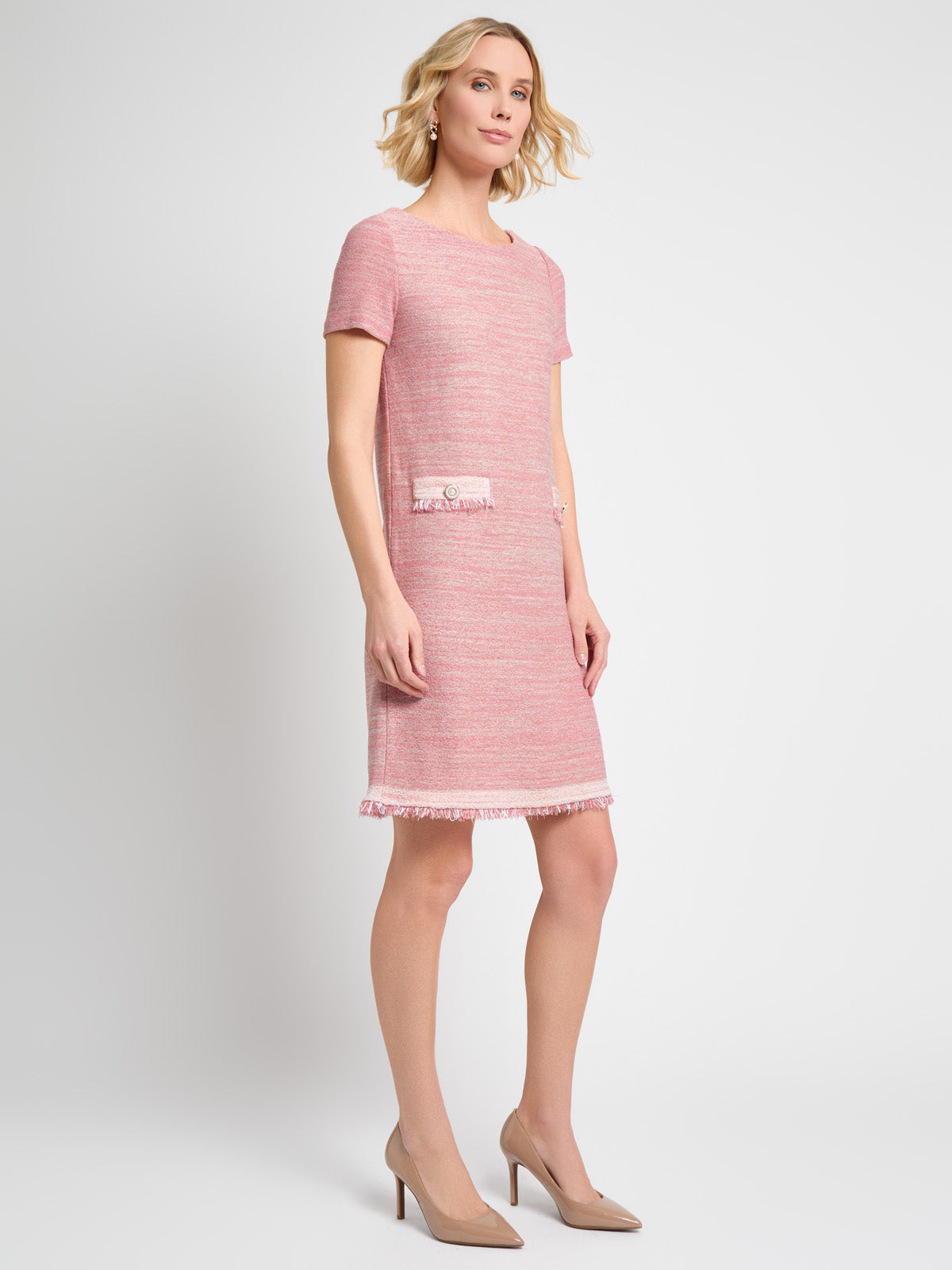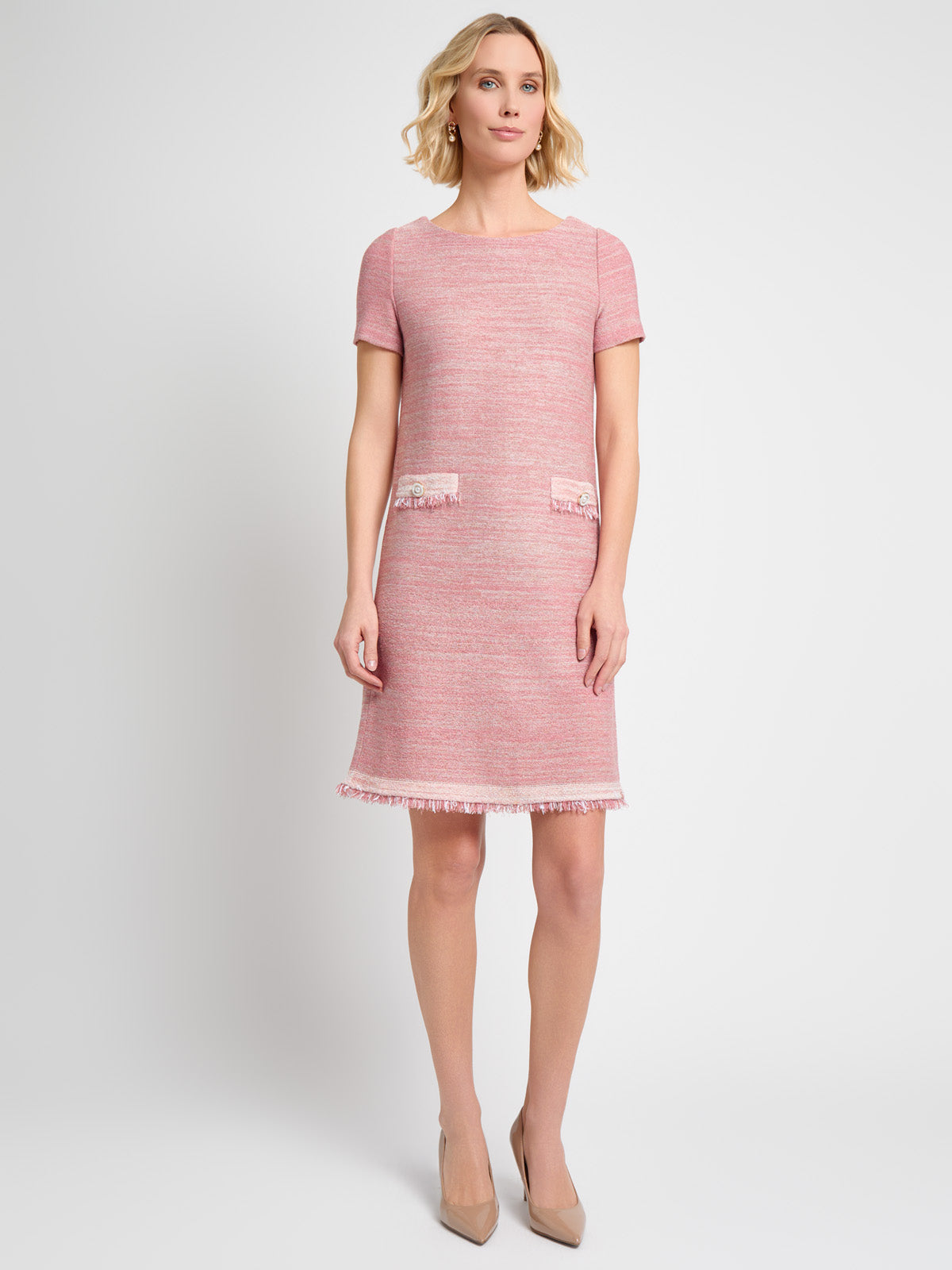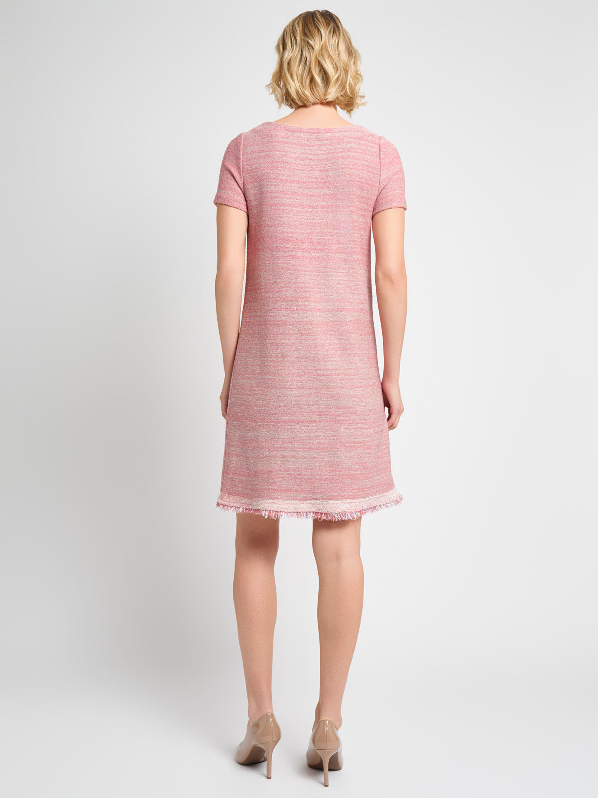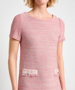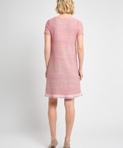 Misook Women’s Fringe Trim Melange Knit Shift Dress – True Fit | Honey Suckle & Charmeuse & New Ivory