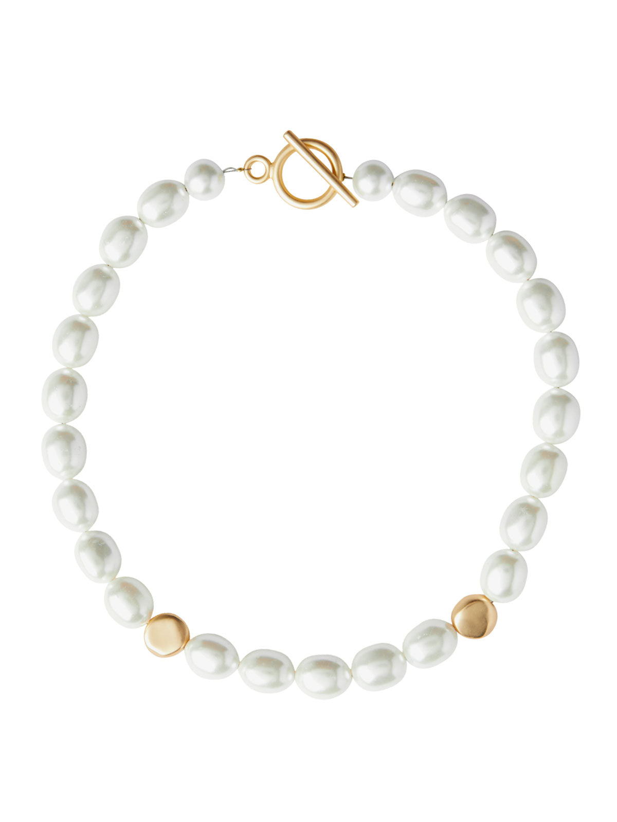 Our Mother of Pearl Accent Necklace is a classic piece that can elevate any outfit. The 18K plated gold features and Mother of Pearl throughout give this piece an air of elegance. Pair back with the matching earrings for a complete look.
