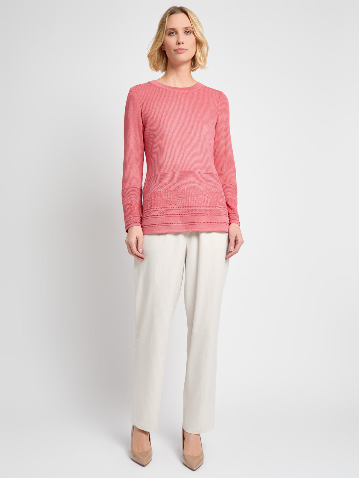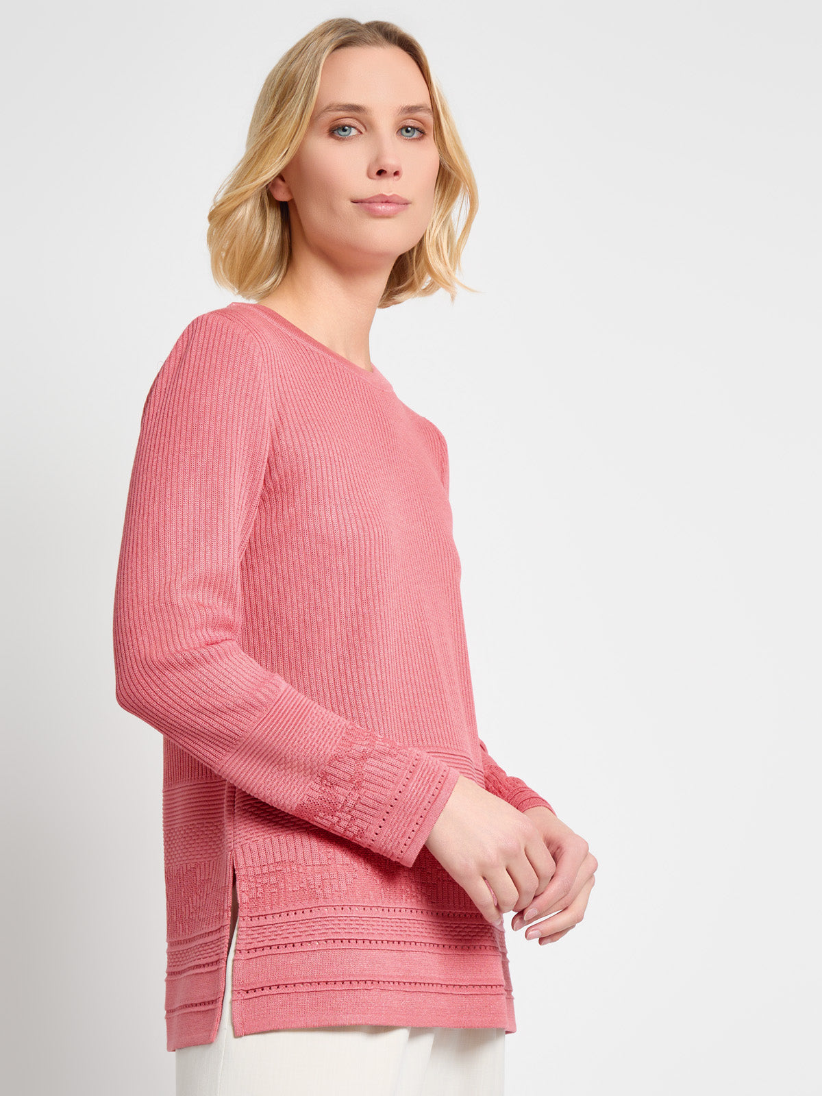 Misook Women’s Multi-stitch Tonal Ribbed Soft Knit Tunic – True Fit | Honey Suckle