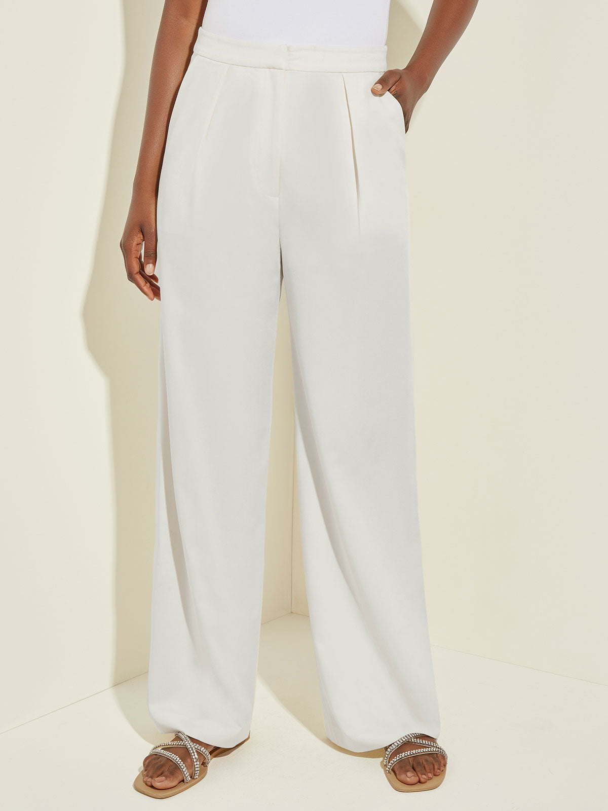 Misook Women’s Naomi Wide Leg Woven Blend Pant, White – Vanity Fit | White