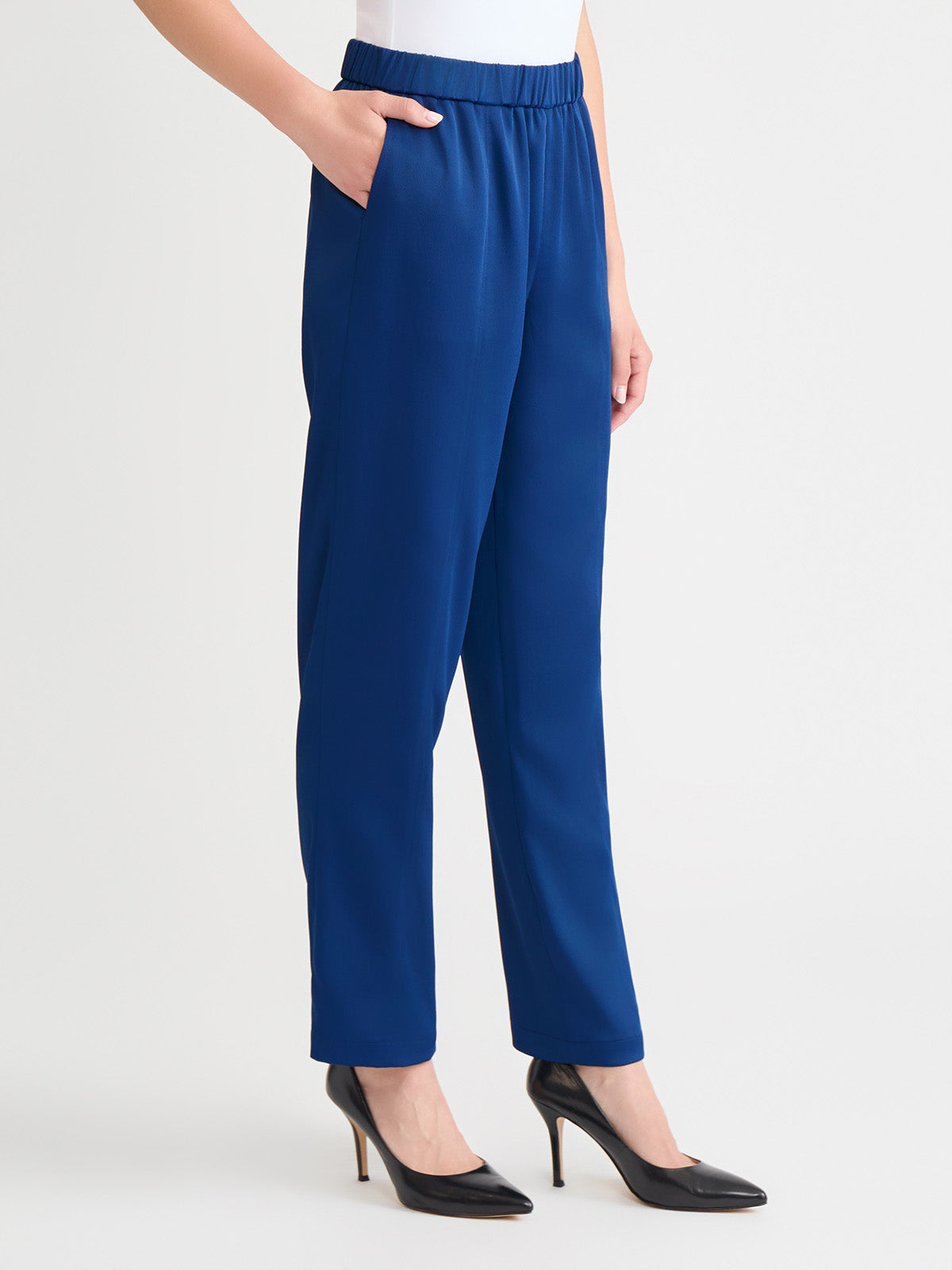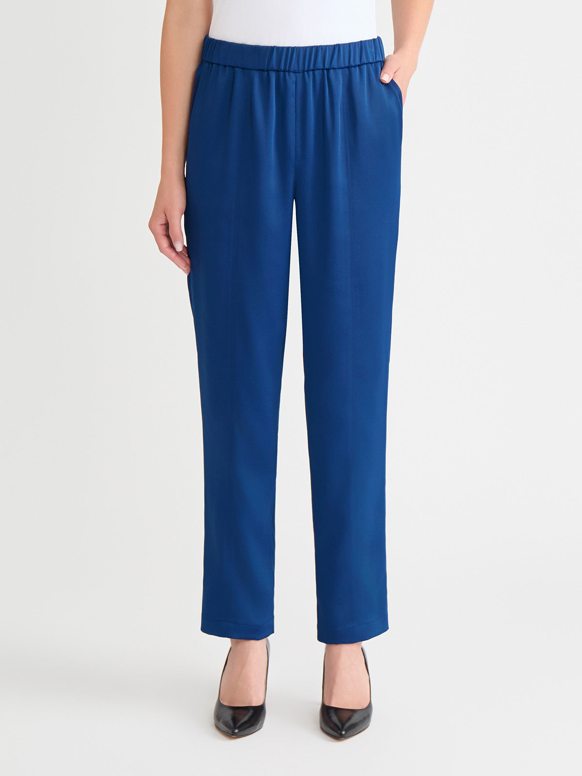 Misook Women’s Nora Straight Leg Crepe De Chine Pant, Lazuli Blue – True Fit | Lazuli Blue