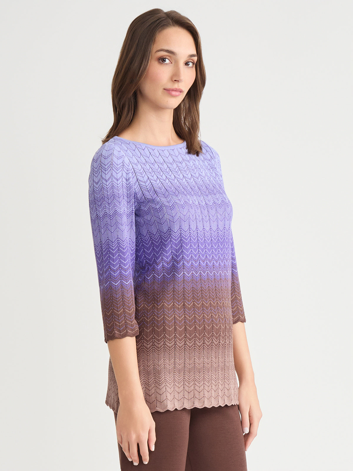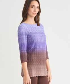 Misook Women’s Ombre Pointelle Soft Knit Tunic – True Fit | Concord Purple & Viola & Truffle & Charmeuse