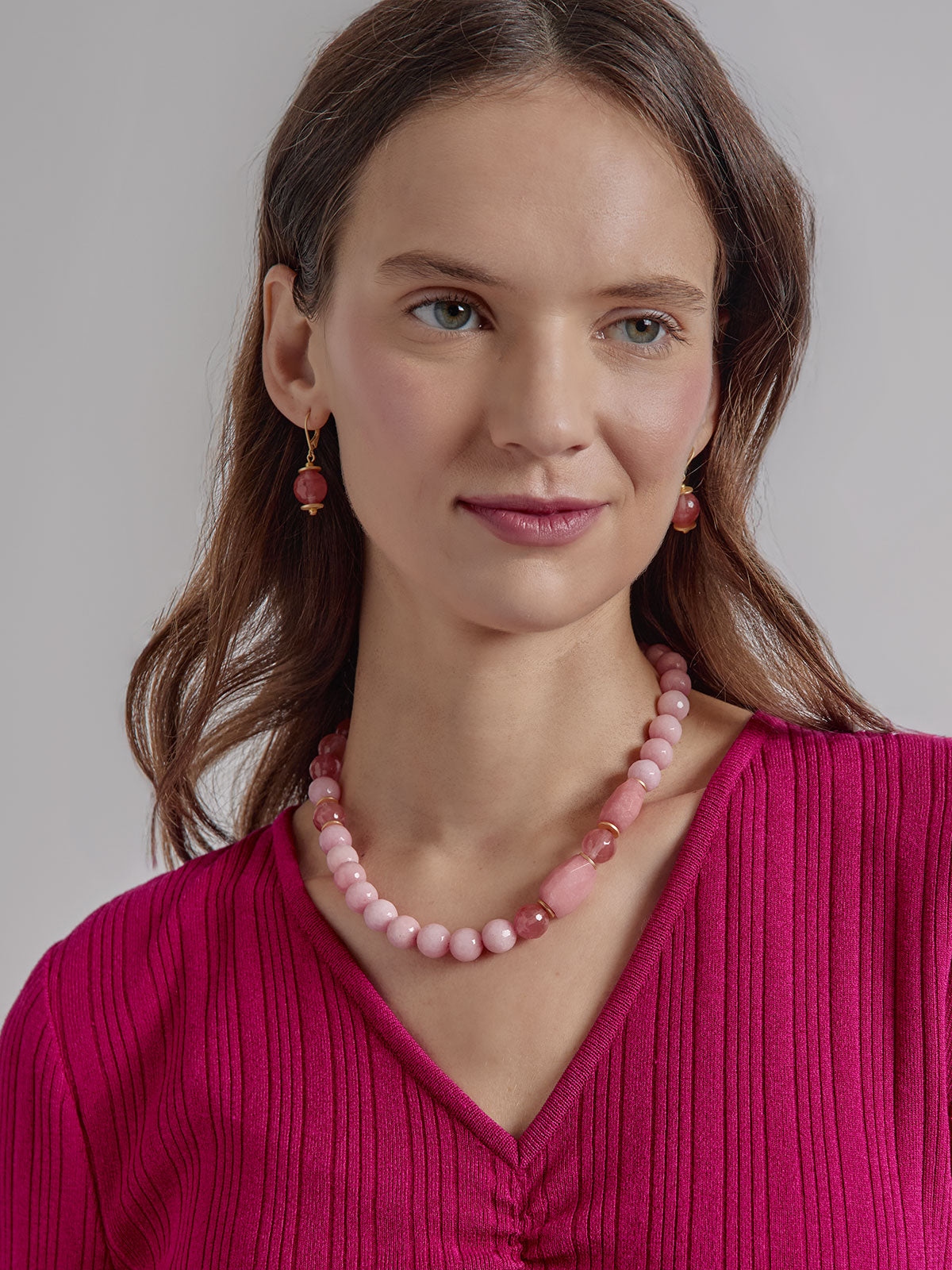 Misook Women’s Peach Jade Mixed Media Necklace | Pink & Gold