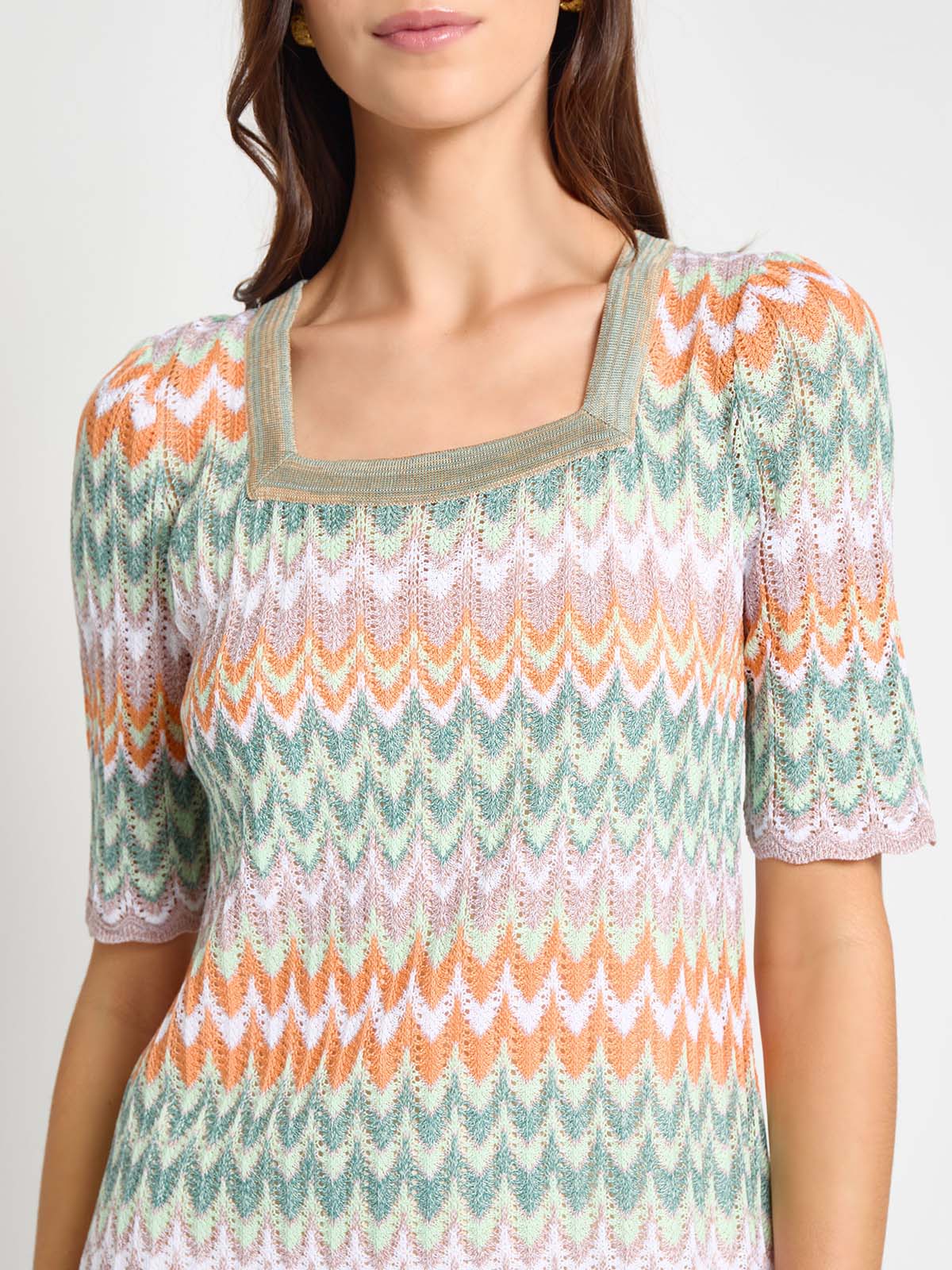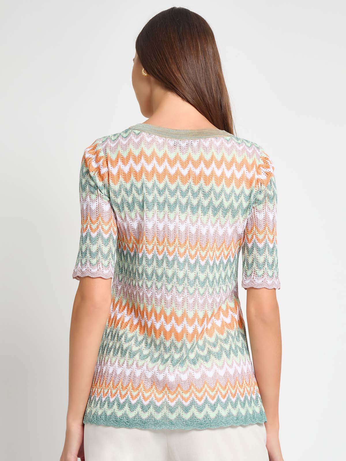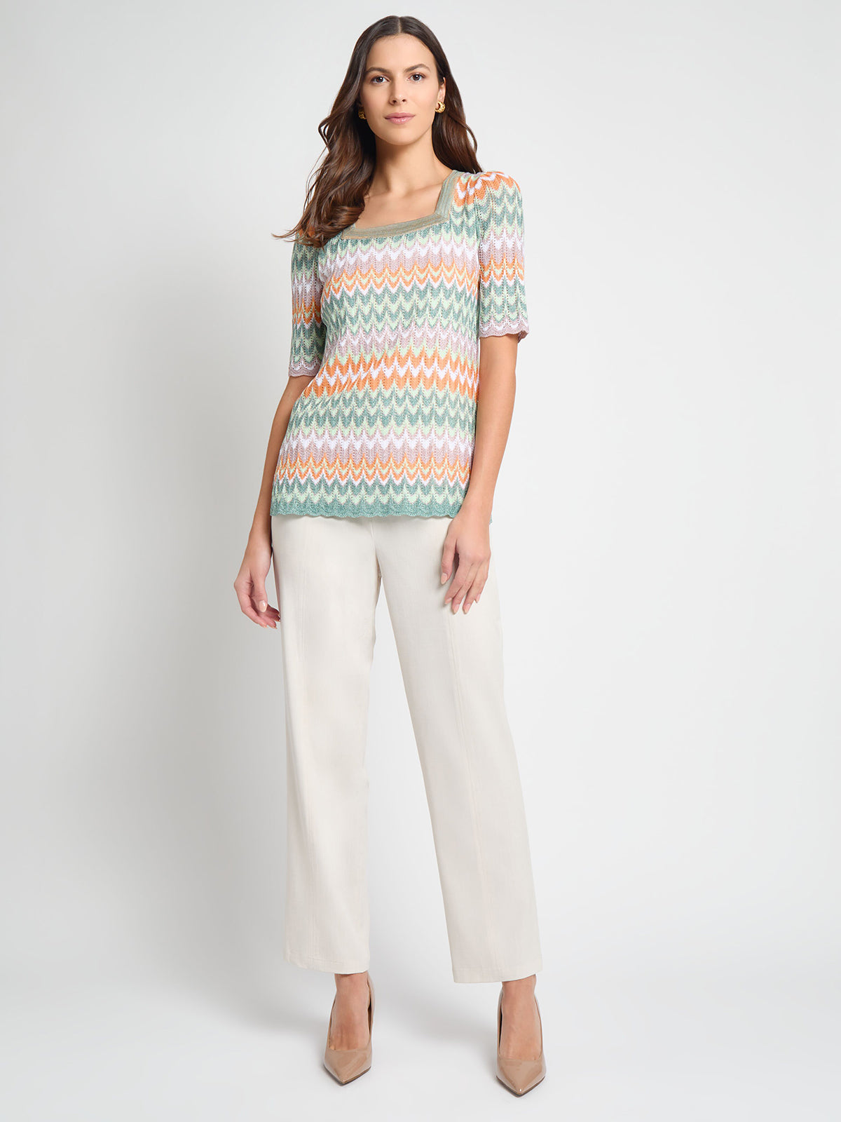 The Pointelle ZigZag Tunic is the perfect combination of comfort and style, designed to elevate your wardrobe with a unique appeal. Elbow-length sleeves provide the perfect amount of coverage, and the contrasting melange knit trim adds a unique, textured detail. Side slits complete the look, offering ease of movement and a chic, polished finish. Pair this knit tunic with a pair of our best selling knit pants or skirt options for a complete look.