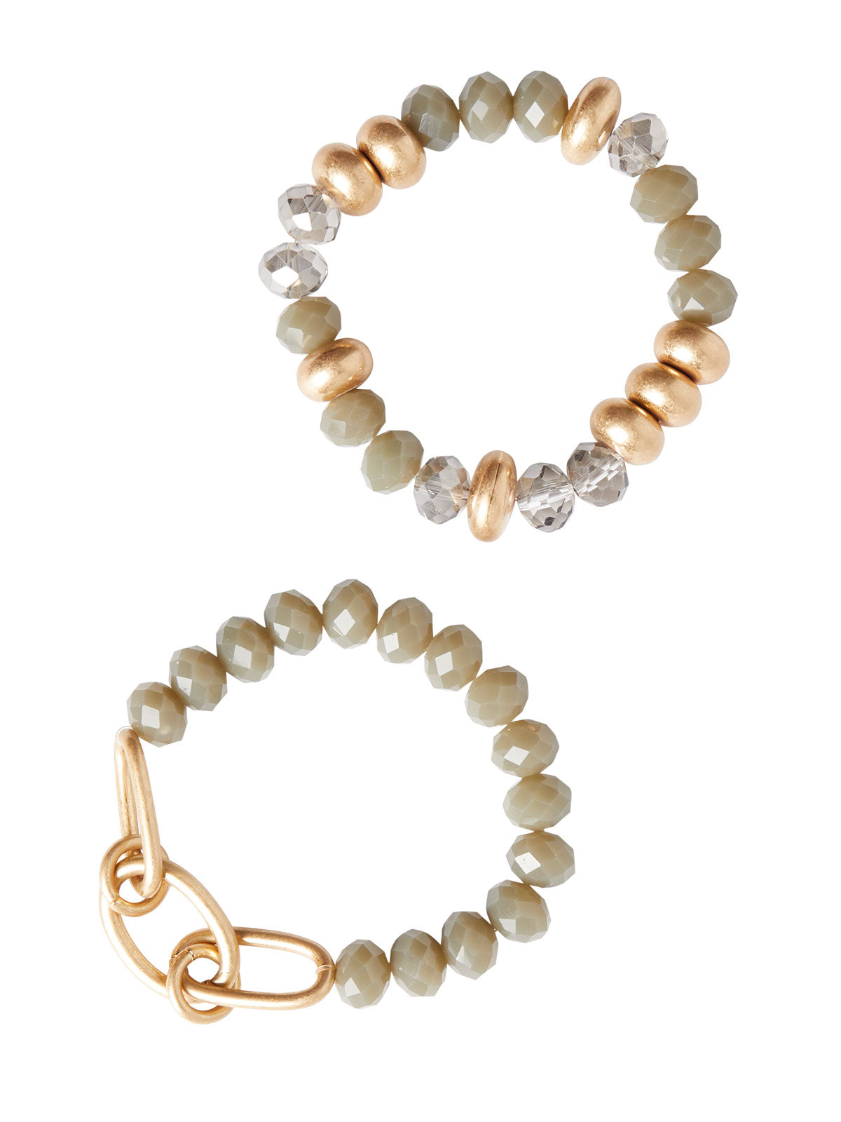 Misook Women’s Sage & Warm 18k Gold Stretch Bracelet Two Piece Set | Matte Gold