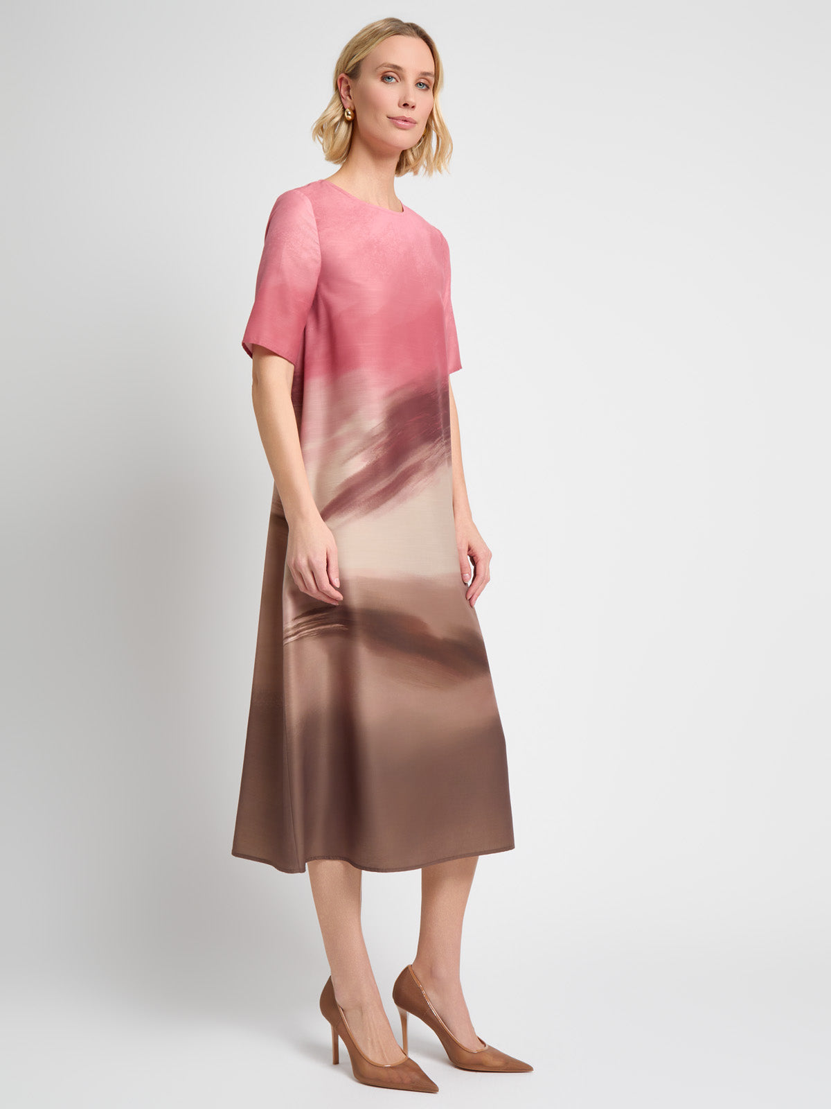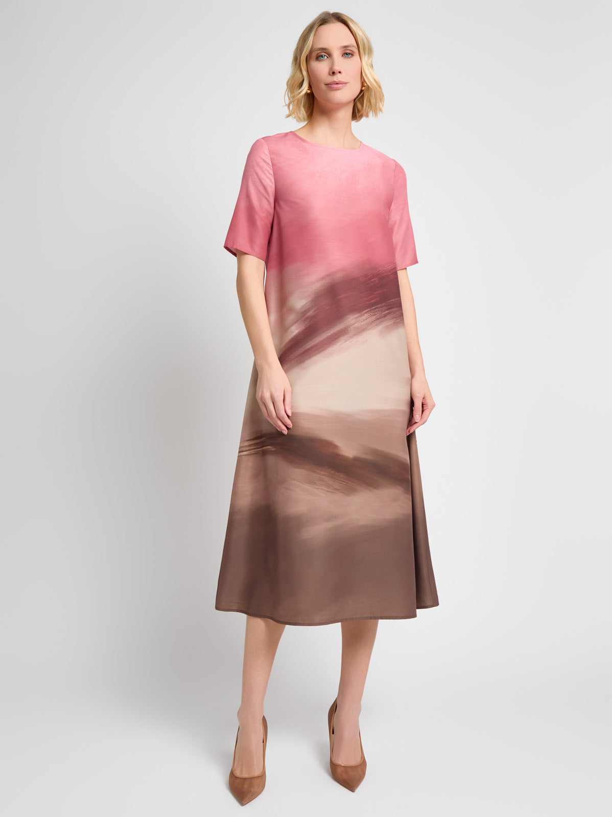 Misook Women’s Botanical Jacquard Soft Knit Tunic – True Fit | Biscotti & Charmeuse & Truffle