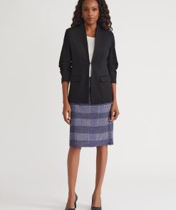 Tailored Silhouette; Women’s XS Blazer Length is 27″. Length May Vary.