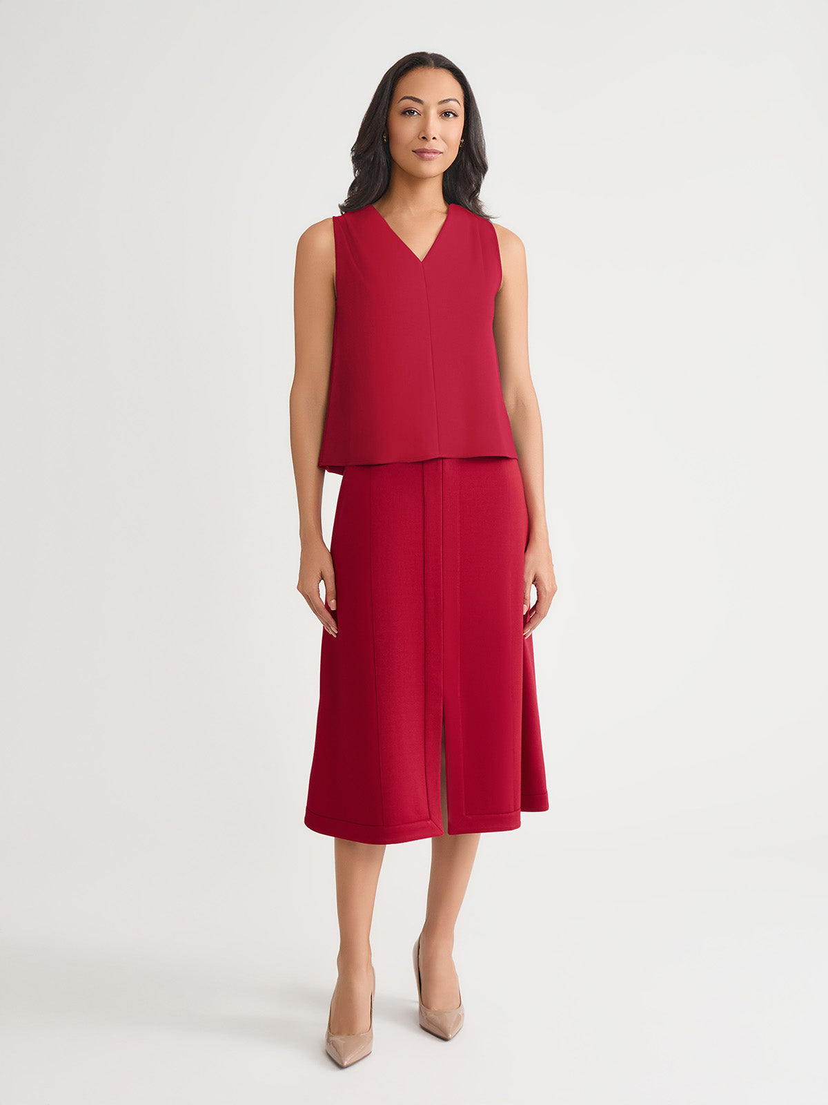 Minimalism meets sophistication in this V-Neck Cotton Tank, a versatile staple designed to elevate every ensemble. Crafted from smooth, breathable cotton, this sleeveless silhouette drapes gracefully with a clean front pleat that adds subtle structure. The flattering V-neckline creates an elongated look, ideal for layering under tailored blazers or wearing solo for understated chic.